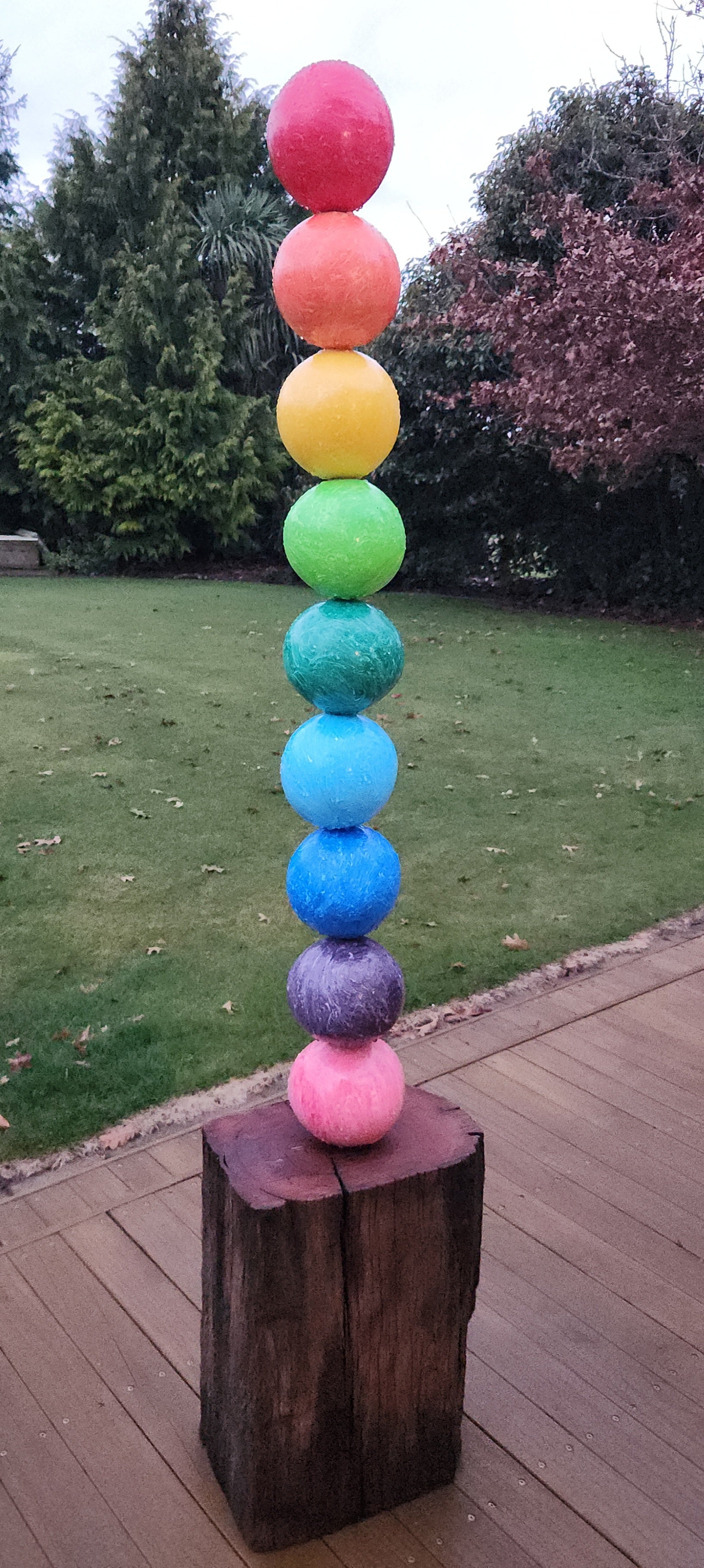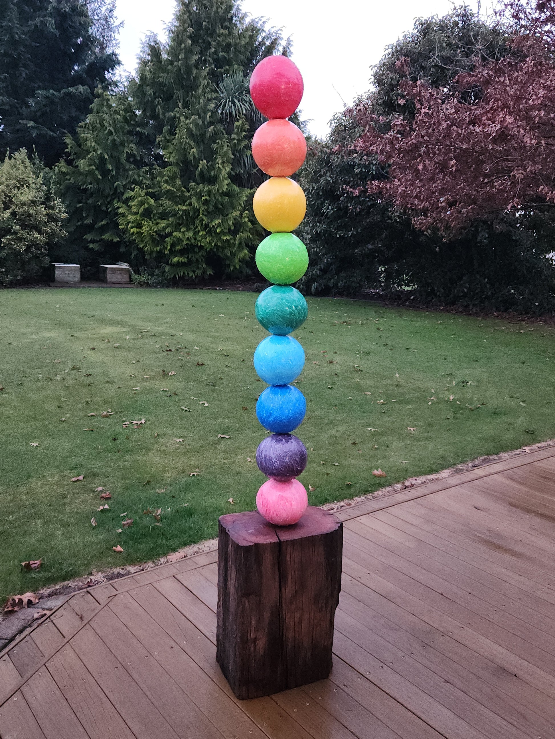 The Blobstick is a bold and dynamic piece that reimagines waste as art. Made entirely from discarded plastic bottles and lids, this work transforms materials destined for landfill into vibrant, enduring creations.